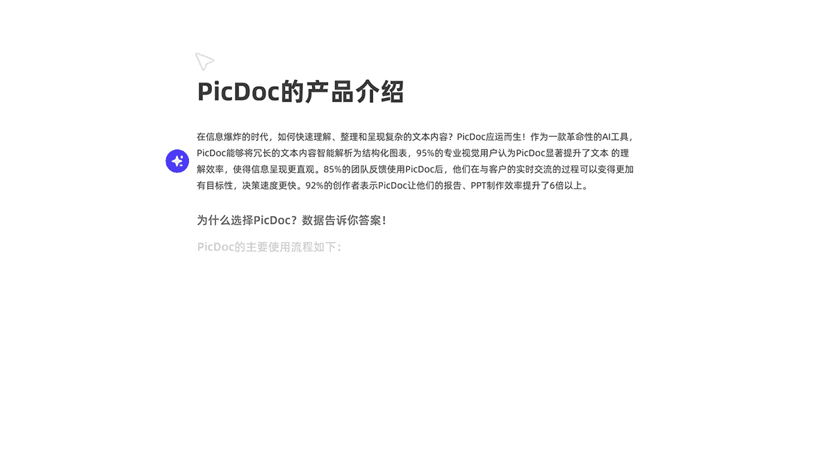 PicDoc è un generatore di infografiche create dall'IA gratuito che trasforma il testo in visualizzazioni comprensibili e condivisibili. Non è necessario conoscenze di progettazione, è perfetto per rapporti, istruzione, reti sociali o presentazioni.